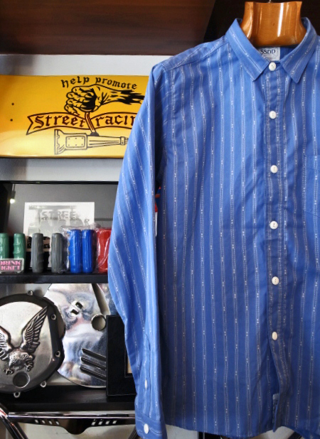 もう1枚は、ドビー柄のストライプ生地を使用したシャツとなります。