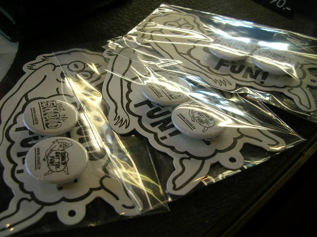 小物のバッチとステッカー。