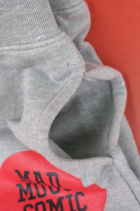フロント左ポケットら辺にMAD MOUSE COMICをプリント。ステッカー貼ってあるみたいにみえる様に何度も重ねて刷ってあります。キレイな発色がでました。