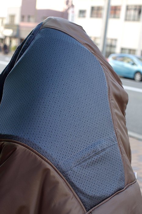 フライトジャケットのディテールを取り入れた、ミリタリーテイストのライディングジャケット。N-2フライトジャケットのテストサンプルをベースに再構築し、ライディング仕様にモディファイ。高密度のヘビーナイロンツイルを表地に使用し、タフな表情と機能性を両立。各所にライディングに適したパターンを落とし込み、ファッション性にも優れた一着に仕上げました。中綿にはシンサレートを採用し、防寒性も確保。