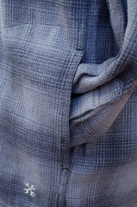 先染めで作成したオリジナルオンブレーチェックのネルシャツです。表面だけでなく裏面にも起毛加工を施した両面起毛の生地を使用しており、一般的なネルシャツよりもさらに気持ちの良い手触りとウォーム感があります。コットン100%の素材で、肌触りも優れています。毎年人気を誇り、秋冬を代表する定番アイテムの1つです。