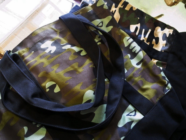 最後に、コットン地にオリジナルデザインの迷彩をラバープリントしたトートバックです。
