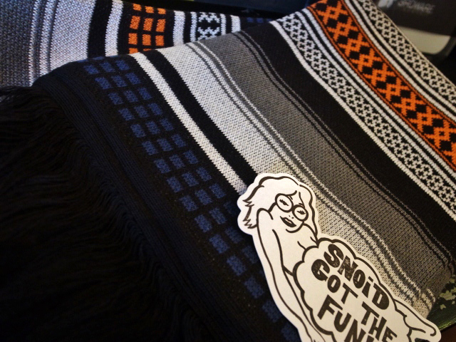 マフラーは、SNOIDには珍しいアイテムですが、癖のあるデザインで今からの季節活躍間違いなしですよ!